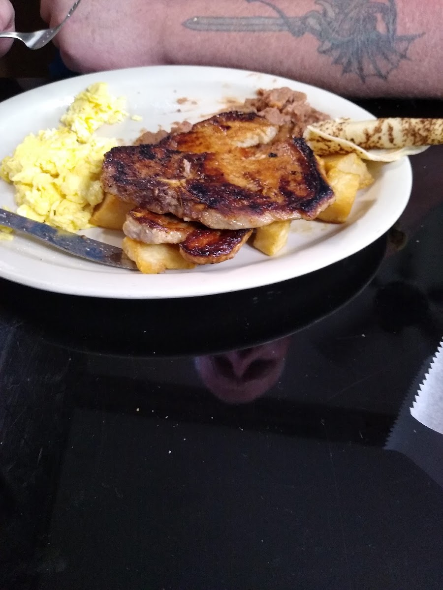 They serve breakfast even later than most, we really wanted breakfast tacos and stopped in at 11 am. The jueves rancheros were perfect, I don't think anyone can mess up this plate. We also tried the pancake plate and s couple of tacos. Thank you for serving us chips and salsa to start. It was nice and quiet and the servers were great. No issues on waiting, just good fresh food.